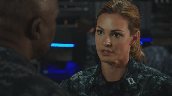 Jeff: Episode 6, “Another Fine Navy Day.” Where to begin? My major complaint about this episode is the way it’s structured. It starts in media res, which is something that always makes me cautious, giving us the ridiculous title “Three hours after the CHEMICAL attack,” with chemical in big red letters. The worst part is, there is absolutely no compelling reason that I could find for the episode to be structured this way! It’s needlessly confusing, something less than artistic, and it overshadows any potentially interesting or integral story developments included in the episode (like the theft of Chaplin’s nuke key).