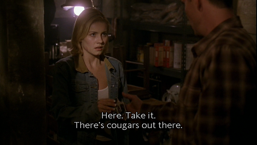 As for cougars, I’m putting out a theory right now that if you took the entire season 2 Kim Bauer narrative on its own, it would play out like an awesome, campy, horror movie-esque, hilarious Murphy’s Law adventure that would be just as fun as it is awful. Of course, I haven’t re-watched Johnny Drama in the woods or the convenience store yet.