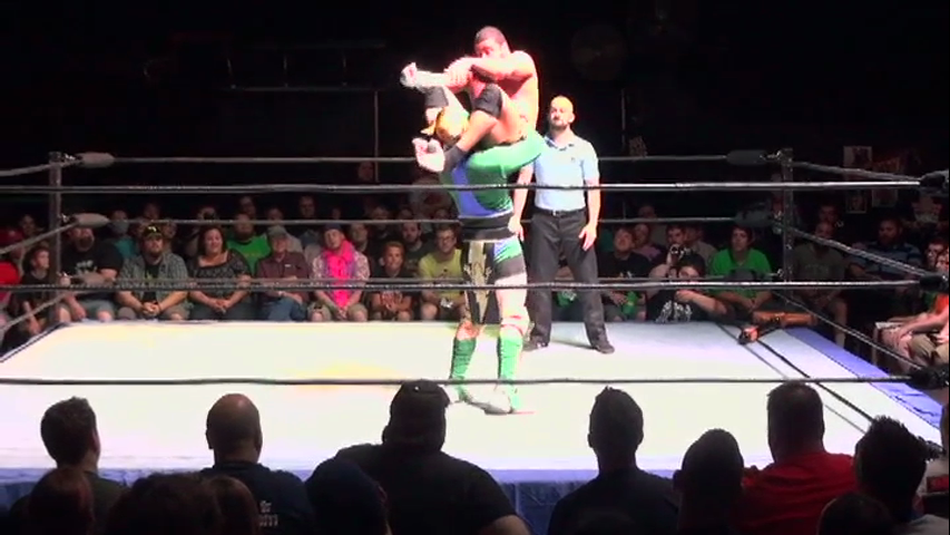 The sizes, movesets, and attitudes of these teams complement one another perfectly. The result was a great back and forth affair until Smashmaster hit a swanton on Matthews for the win at 9:33.
