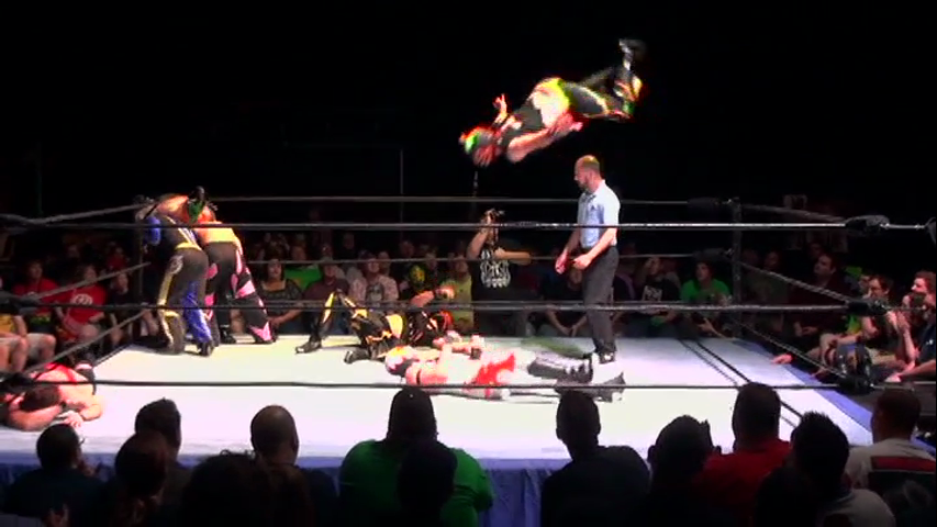 Remember last review when I said that Chikara is bulletproof in multi-man matches? I’ll say it again, but slower this time, for emphasis. Bullet. Proof. This match had fast action, great pacing, and a nice finisher barrage, which is very high on the list of Wrestling Tropes I Love.