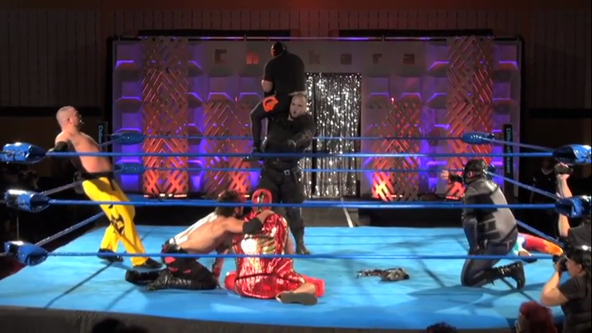 Chicanery ensued as Dasher found various ways of turning the ring gear of Mikey and Kenny against them. The Spirit Squad isolated the Golden Trio for a while until Chikara’s heart led to a comeback, a pair of 3Ds and the Chikara Special.