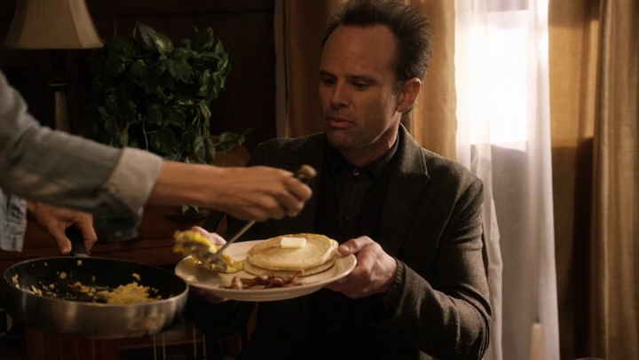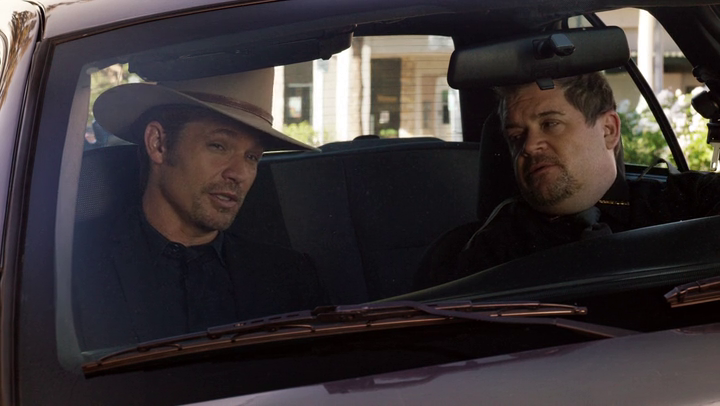 If Justified is going to make its final season bigger than just wrapping up the stories of our core cast, then they’re doing right by us in the guest casting department. This is the type of episode I refer to as a Guest-stravaganza (or Guest-STARvaganza, if you want to be extra clever). Sure, half of the guest stars are people we just met this season, but seriously: Mary Steenburgen, Garret Dillahunt, Sam Elliott, Mykelti Williamson, Scott Grimes, Choo-Choo (Duke Davis Roberts), Brad Leland, Jeff Fahey (so that’s what happened to Frank Lapidus), Danny Strong and PATTON OSWALT! What fun! Side Note: I smell a TV Land sitcom starring Danny Strong and Patton Oswalt as brothers who run a diner. It’s called Short Order (which is also, incidentally, a reference to the number of episodes of the show that will be produced).